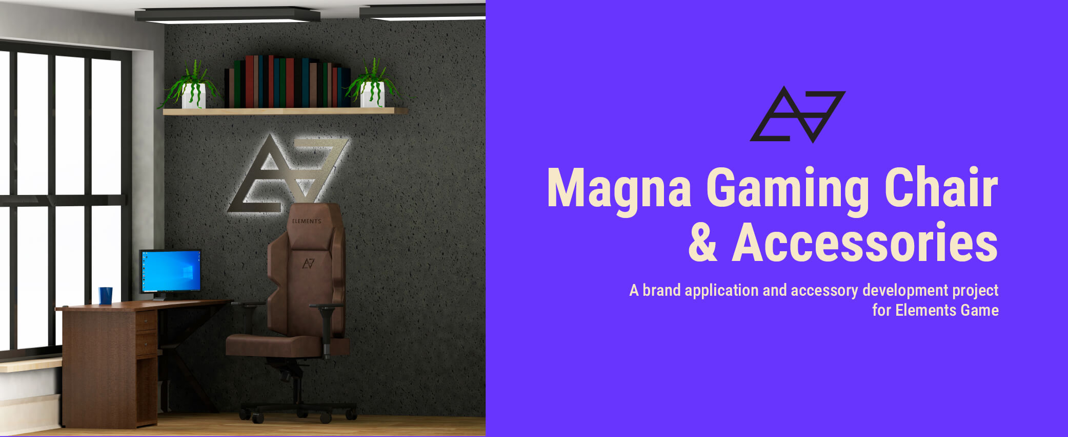 The goal of this project was to enhance the Magna gaming chair by integrating the Elements brand identity into the chair. To create a signature design for the company, custom accessories such as casters, armrests, and a logo-inspired footrest were developed. These elements were designed not only to reinforce brand recognition but also to improve functionality and aesthetics. To ensure feasibility and ergonomic performance, the accessories were 3D-modeled in SolidWorks and prototyped using 3D printing for testing and refinement.
